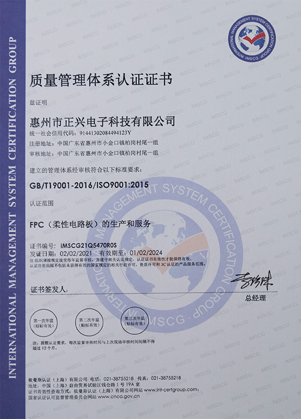 质量管理体系证书
